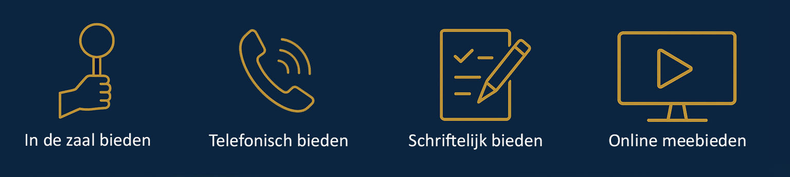 Tijdens onze traditionele live veilingen kunt u op vier manieren meebieden: